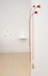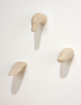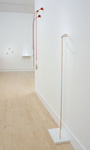 Deceptively simple, Koen's work has typically included materials such as yarn, thread, and needle. In his new work, however, Koen supplements his ambiguous forms and crocheted, orb-like sculptures with hand-carved wooden pieces that interact quietly with the softer components. The wooden forms themselves are hand-whittled and sanded from maple stock. In addition to evoking the rustic aesthetic of the artisan, the wooden pieces are understated objects that simultaneously embody both pictoral and physical space, simple lines and concrete forms.