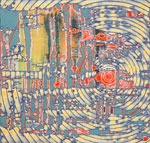 In Walker's new pieces, acrylic drawings on paper and paintings on panel, images that hint at geological activity are fused with grids that suggest urban plans. Sinking archipelagos are juxtaposed against monumental architectural projections, while seemingly digital realities intersect to perplex the overall topography. In Walker's large-scale piece, Signalscape, 2008, measuring 70" by 90", intricate geometric diagrams cut across multi-hued, layered passages that loom like abstract descriptions of weather patterns. Super-saturated grids of lines, circles, and crumbling blueprints seem to stand in as symbols of natural processes. All of these rudimentary shapes, which resemble rays of sunlight, thunderstorms, and glaciers, work to further Walker's investment in the multiplicity of natural and technological processes, from the things that we see to the things that are imperceptible.