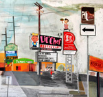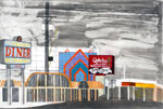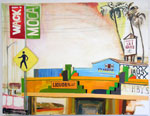 Gregory Lind Gallery is proud to present Road Works, new paintings and drawings by New York-based artist Karla Wozniak. Wozniak's work depicts an American landscape defined by automotive culture and the social ramifications of suburban sprawl. Her paintings, inspired by road trips, depict places ranging from beach town strips in Florida to towns and suburbs in New Jersey, to big cities like Los Angeles, where buildings and brand names vie for space alongside the vanishing natural landscape.
