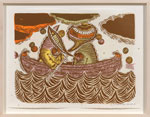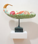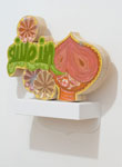 Acrylic, gouache, spray paint on wood, canvas and gourd