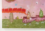 Acrylic, gouache, spray paint, graphite, cotton, thread on paper