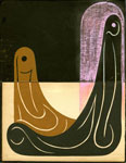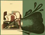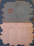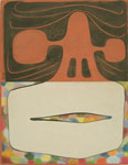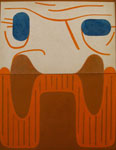 Tom Burckhardt adds his own drawings and paintings to book covers, generating a sly, self-parodying approach to the process of revision and repurposing. His works are mostly abstract with figurative elements including the insinuation of heads and faces. Many of the pieces incorporate elements of the book covers, using details as compositional elements and color from the book cloth. In most, Burckhardt has used the front and back of the book covers to create diptychs, contrasting the book cloth with the end paper. Burckhardt has noted: "My aim is to make the more descriptive elements feel abstract and to push the abstract elements into the real world of space and gravity." Much of Burckhardt's visual language is based on ancient art from cultures in which symbolic and narrative forms appear as mysterious, indecipherable, and coded.