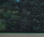 The parking lot is a recurrent motif. A ubiquitous site, not commonly thought to inspire imagination or optimism, it is nonetheless, the starting point for many of these highly interpretative works. Longstreth will often begin a new piece by painting a parking lot and then improvising from there. The parking lots serve not so much as an indictment of contemporary land use practices, but as an opening gambit from which to explore painterly and perceptual space. Woods is an example of this process and emerges from Longstreth’s memory of a drawing he made as a grade school student. The painting is both highly realist and highly abstract as it delves into the paradoxical interplay between a flat, indeterminate mass of trees and a deftly articulated sense of depth and space. The darkness of the piece affords it a dreamlike intensity that many of the pieces in this show share. Cornbelt, directly inspired by the book The Omnivore’s Dilemma, is a stark and vivid depiction of an agricultural landscape transformed by technology. Longstreth explores the bland homogeneity of cornfields while making explicit the underlying darkness of a crop transformed by technocratic and global forces. Longstreth’s vivid yet eerily vacant and saturated landscapes are born from a restless practice of experimentation and plot worlds that are more visionary than observational. Denuded of extraneous details, the paintings evoke memories of things seen, felt, or perhaps merely driven past. The works also signal a return to oil painting and are grounded in a palpable tension between highly mediated imagery and viscerally felt experience, while examining history, memory and subjectivity, and personal and collective spatial phenomena.