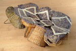 Maychack’s previous works were typically suggestive of functional objects and architecture, while his latest work is a nod to the manner in which humans have become adept at navigating the continuum between the functional, physical space and abstract pictorial space. The nexus of these two spaces is the intricate weavings of baskets and chair caning, both found and hand-woven by the artist. The visual patterns and the physical structure of the woven pieces supply both the framework of the physical piece and the visual field observed by the viewer.
