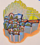 In these paintings Walker implies that objects are momentary solidifications at a crossroad where process, time and space entangle. Forms reminiscent of islands, mountains, clouds, spores, meteors and other heavenly bodies serve by turns as objects, territories and screens for projection. Here at this perspectival point we are invited to contemplate objects as portals to multi-dimensional perception.