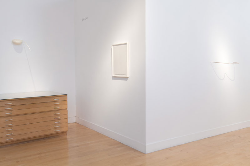 Gregory Lind Gallery is pleased to present a new series of works by Seth Koen, comprising a group of wood and crochet sculptures along with a series of letterpress prints made during his fellowship at Kala Art Institute. Shapes sprout from the walls like strange flora and fauna, while other pieces resemble sleek handwriting squiggles suspended like decisive gestures and surging statements in space.